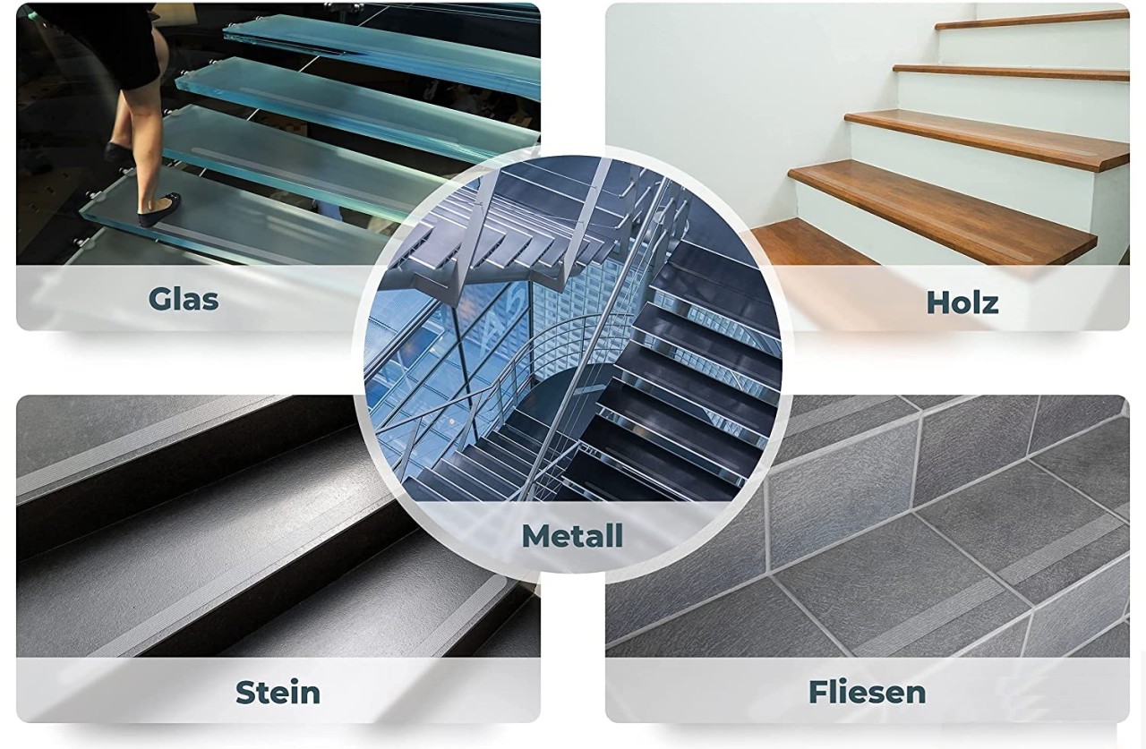 IMPAG® Anti Rutsch Streifen für Treppenstufen aller Art Treppenstufen sind immer glatt. Ganz gleich, ob es eine Treppe mit Holzstufen oder eine geflieste Treppe ist. Selbst mit Hausschuhen ist es nicht immer ausreichend rutschfest. Spezielle Anti Rutsch Streifen für Treppenstufen machen alle Stufen sicher. Diese unscheinbaren Helfer bewahren den schönen Anblick einer jeden Treppe. Die Anti Rutsch Streifen sind transparent, gerade mal 3 cm breit und haben eine Länge von 65 cm. Damit wird die gesamte Laufbreite der Treppe abgedeckt. Platziert wird der Anti Rutsch Streifen ca. 6-8 cm von der vorderen Stufenkante, auf die Auftritt-Fläche der jeweiligen Treppenstufe. Die Anti Rutsch Streifen einreihig pro Stufe zu bekleben, reicht in der Regel aus. Die grobporige Oberfläche sorgt für genügend Rutschfestigkeit im Auftritt-Bereich. Es sind 18 Stück transparente Anti Rutsch Streifen im L…””
