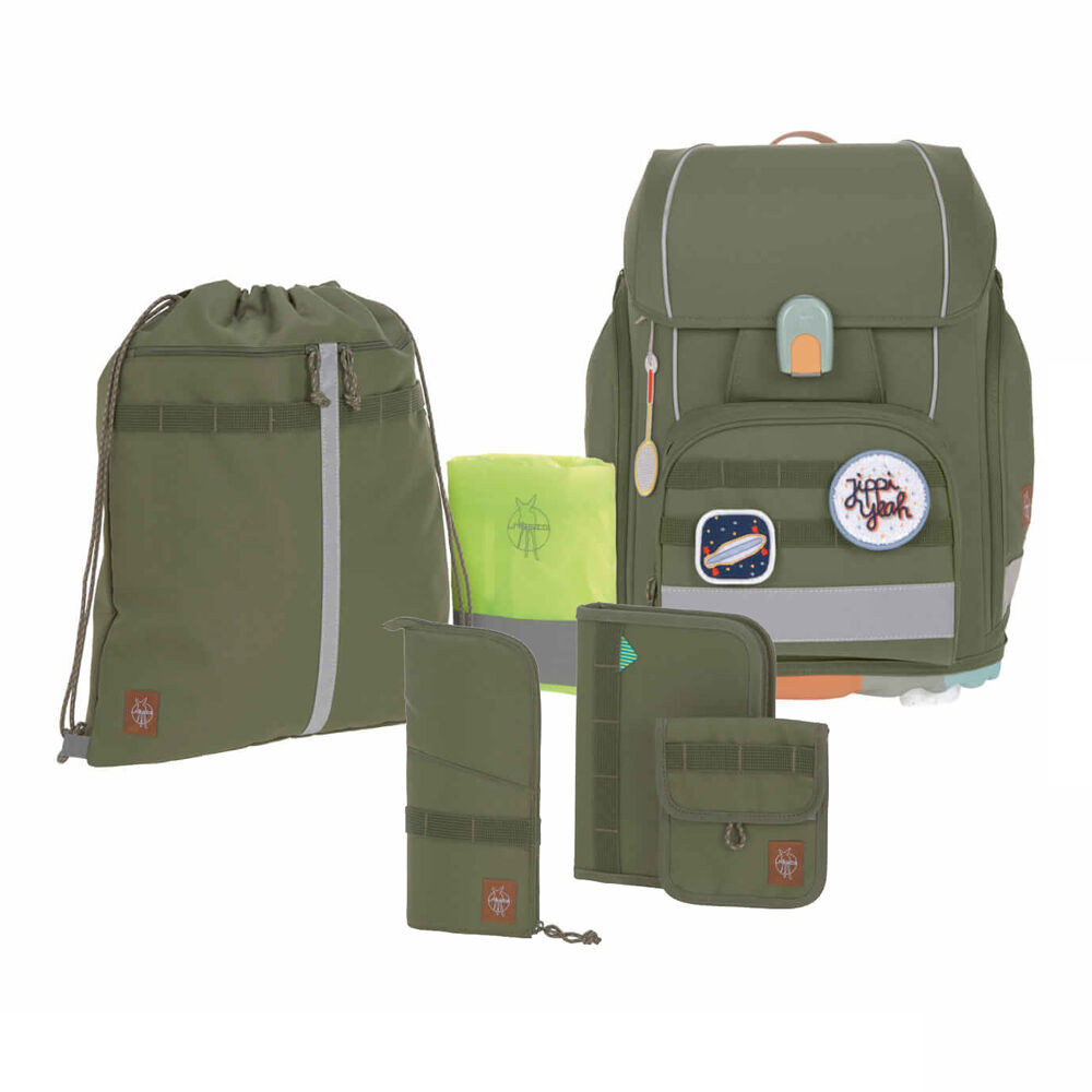 LÄSSIG Boxy Unique Schulranzen-Set 7tlg Olive