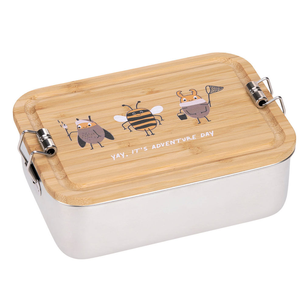 LÄSSIG Edelstahl Brotdose mit Bambusdeckel Nature